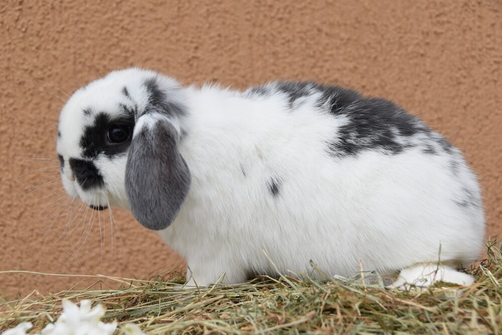 Nagyon szép kis pöttyös hölgy, köszöni ő tudja ám hogy gyönyörű. Kedves, bájos, nyugodtabb nyuszi, nem pörög egésznap, szereti a hasát és henyélni, finom, békés 3 hónapos nyuszilány.